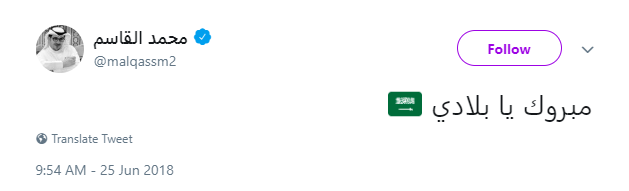 ومن ناحية أخرى، قال محمد القاسم، رئيس نادي التعادون السعودي "مبروك يا بلادي".