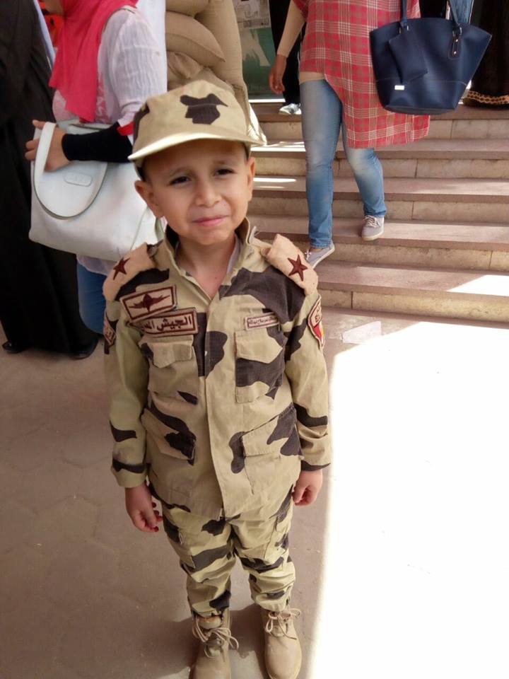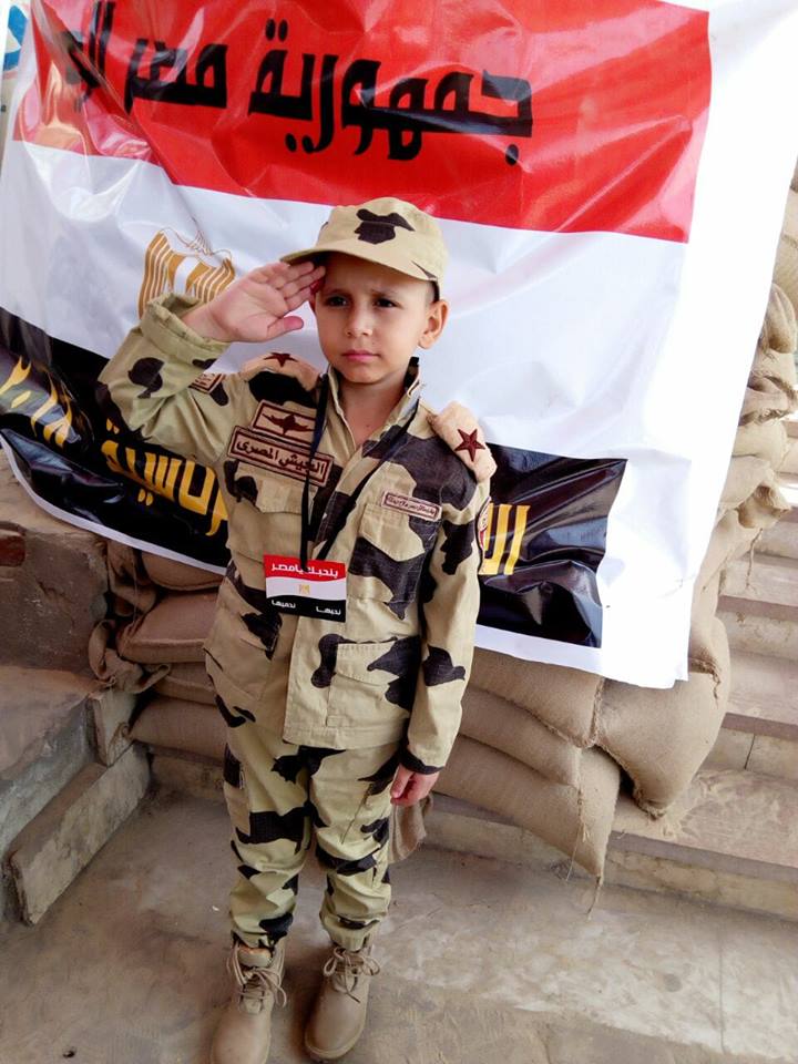 يقف ببدلته العسكرية المموهة يهتف بصوته الرقيق «تحيا مصر» فتوجهت بخطواتى مهرولًا نحو الملاك الصغير الذى قد بلغ من العمر الثانية عشرة لأقف بجانبه أداعبه وأسأله عن اسمه، فينظر نحوى لأعلى لقصر طوله مبتسمًا «أنا عمر»، فسألت سؤالى الثانى (لابس بدلة الجيش ليه يا عمر؟).. فرد (علشان أنا جندى مقاتل وبحب الجيش وبحب مصر).