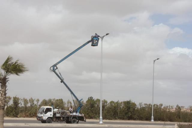 وقال المهندس شريف الشربينى: تم أيضاً تغيير جلوبات أعمدة الإنارة للحدائق حول الجهاز لجلوبات ليد، وتم رفع أعمدة الحوادث من طريق دهشور الشمالى وتركيب بدلاً من التالف منها، وإصلاح الأعمدة، كما تم إصلاح الأعمدة وإنارة الكشافات بطريق الأبنية التعليمية الرابط بين محور 26 يوليو والواحات وحتى مول مصر، موضحاً أنه جارٍ حالياً الدراسة الضوئية لطريق الواحات لتغيير كشافات الصوديوم بكشافات ليد.