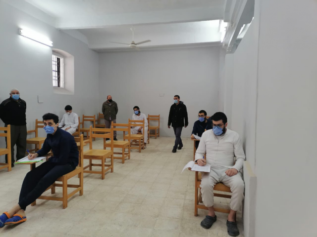 في إطار استراتيجية وزارة الداخلية الرامية بأحد محاورها إلى إعلاء قيم حقوق الإنسان وإعادة تأهيل نزلاء السجون، والعمل على إنخراطهم فى مدارج المجتمع عقب انقضاء فترة العقوبة وتحقيق أكبر قدر من الاستقرار النفسى والاجتماعى لهم داخل محبسهم.. وبمناسبة بدء إمتحانات الصفوف الدراسية المختلفة بالمدارس والجامعات المصرية.. فقد قام قطاع السجون بالتنسيق مع وزارتى التربية والتعليم والتعليم العالى بعقد عدد من اللجان لإمتحان النزلاء بعدد من السجون المختلفة ، والحرص على توفير الأجواء المناسب لأداء الإمتحانات ، وذلك بعد إتخاذ كافة الإجراءات الإحترازية والوقائية التى تنفذها وزارة الداخلية داخل كافة الجهات الشرطية ضمن الخطة المتكاملة المتبعة للوقاية من فيروس كورونا المستجد .
