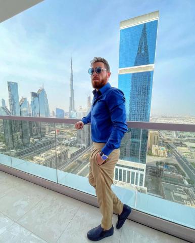 محمود حجازي بالأزرق أعلى ناطحه سحاب في دبي احتفالا بعيد الأضحى