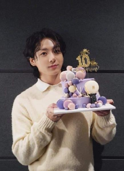 شارك النجم "جيون جونجكوك" عضو فريق BTS الشهير باسم "jk"جمهوره منشورا جديده عبر حسابه بموقع التواصل الاجتماعي "بالويفيرس " بمناسبه احتفالا بالذكرى العاشرة لفريقه BTE