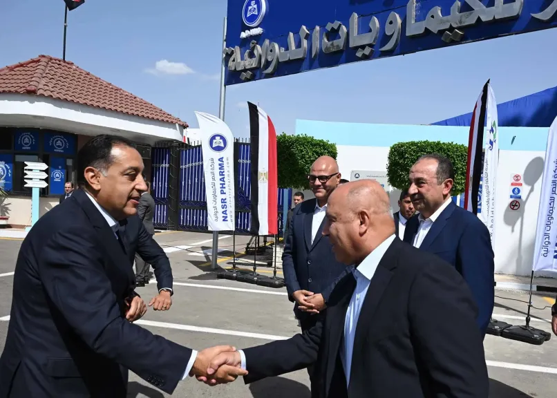عقب افتتاحه الدورة السابعة لمعرض المنتجات الحرفية والتراثية "تراثنا ٢٠٢٥"، توجه الدكتور مصطفى مدبولي، رئيس مجلس الوزراء، إلى محافظة القليوبية لافتتاح وتفقد ٤ مصانع مطورة تابعة لشركة "النصر للكيماويات الدوائية" المملوكة للشركة القابضة للأدوية والكيماويات والمستلزمات الطبية، إحدى شركات قطاع الأعمال العام، يرافقه الدكتور خالد عبد الغفار، نائب رئيس الوزراء للتنمية البشرية، وزير الصحة والسكان، والفريق مهندس كامل الوزير، نائب رئيس الوزراء للتنمية الصناعية، وزير الصناعة والنقل، والمهندس محمد شيمي، وزير قطاع الأعمال العام، والمهندس أيمن عطية، محافظ القليوبية، والدكتور علي الغمراوي، رئيس هيئة الدواء المصرية، والدكتور هشام ستيت، رئيس الهيئة المصرية للشراء الموحد والإمداد والتموين الطبي وإدارة التكنولوجيا الطبية، والدكتورة إيمان ريان، نائب محافظ القليوبية، ومسئولي الشركة القابضة للأدوية والكيماويات والمستحضرات الطبية.