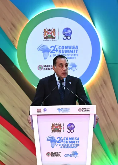 ألقى الدكتور/ مصطفى مدبولي، رئيس مجلس الوزراء، اليوم، كلمة مصر، خلال مشاركته نيابة عن فخامة الرئيس عبدالفتاح السيسي، رئيس الجمهورية، في القمة الرابعة والعشرين لتجمع السوق المشتركة للشرق والجنوب الأفريقى "الكوميسا"، التي تستضيفها العاصمة الكينية نيروبي، بحضور لفيف من القادة الأفارقة ورؤساء الحكومات ورؤساء المنظمات الأفريقية.