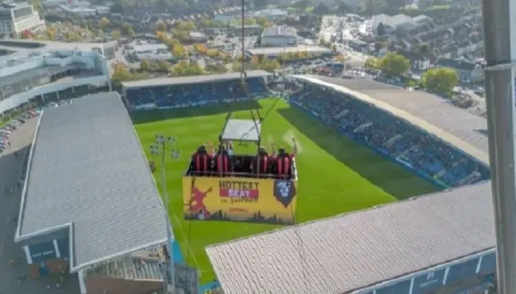 عاش 4 من مشجعي كرة القدم تجربة فريدة من نوعها، بعد مشاهدة مباراة من على ارتفاع 50 مترا في الهواء بواسطة رافعة.