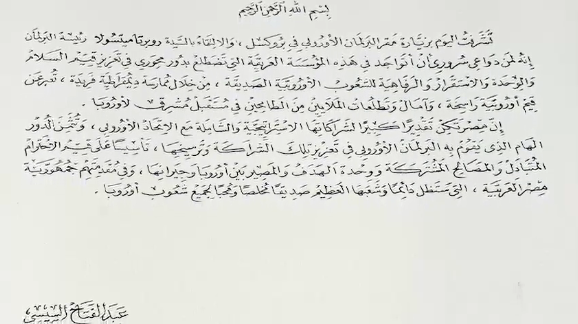 شاهد .. نص رسالة الرئيس السيسي في سجل كبار زوار البرلمان الأوروبي