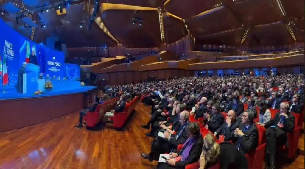 شارك فضيلة الإمام الأكبر أ. د. أحمد الطيب، شيخ الأزهر الشريف، رئيس مجلس حكماء المسلمين، في القمَّة العالميَّة التي تعقدها جمعية سانت إيجيديو بالعاصمة الإيطالية روما تحت عنوان "اللقاء العالمي من أجل السلام: إيجاد الشجاعة لتحقيق السلام"، بحضور الرئيس الإيطالي سيرجيو ماتاريلا، وجلالة الملكة ماتيلد ملكة بلجيكا، وأبرز القادة الدينيين والمفكِّرين من حول العالم.