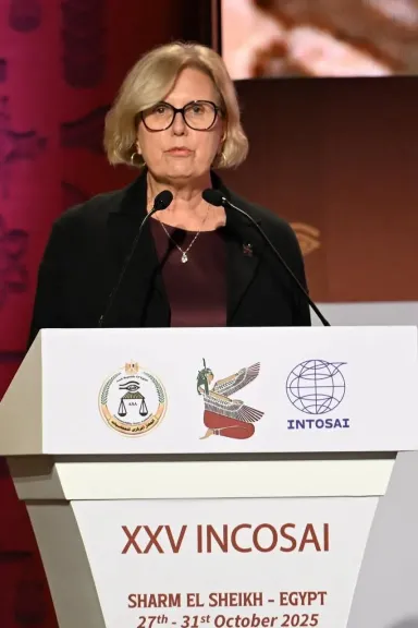 ألقت الدكتورة مارجيت كراكر، رئيسة محكمة المراجعة بجمهورية النمسا الاتحادية، والأمين العام للمنظمة الدولية للأجهزة العليا للرقابة المالية والمحاسبة (الإنتوساي)، كلمة خلال الجلسة الافتتاحية للمؤتمر الخامس والعشرين للمنظمة، المنعقد بمدينة شرم الشيخ تحت رعاية فخامة الرئيس عبد الفتاح السيسي، وتشريف دولة رئيس مجلس الوزراء الدكتور مصطفى مدبولي، وباستضافة الجهاز المركزي للمحاسبات برئاسة المستشار محمد الفيصل يوسف.