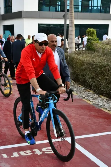 حيث قام السادة الوزراء بجولة داخل أرجاء النادي بالدراجات، الذي أُقيم على أحدث الطرز الإنشائية ويضم مجموعة متكاملة من المنشآت الرياضية والخدمية والاجتماعية، منها ملاعب كرة القدم الخماسية والتنس والاسكواش، ومجمع حمامات السباحة، وصالة الجيمانيزيوم، والمبنى الاجتماعي، والمطاعم والكافيتريات، بما يجعله نموذجاً متكاملاً للأندية الحديثة التي توفر خدمات متكاملة للأعضاء وروادها من مختلف الفئات العمرية، اعقبها مباراة كرة قدم بين السادة الوزراء.