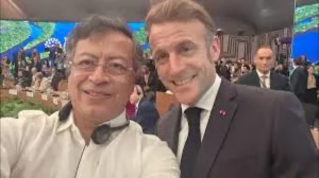 وعلى هامش القمة نفسها، التقى ماكرون الرئيس الكولومبي جوستافو بيترو في أجواء ودية، حيث التقطا صورة سيلفي رمزية نشرها بترو على حساباته في مواقع التواصل الاجتماعي.