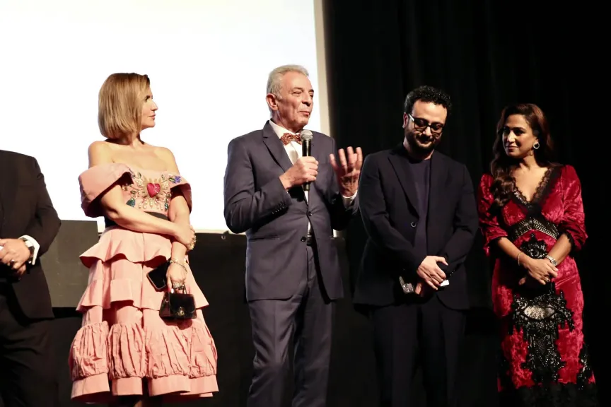 واحتفى صناع الفيلم وأبطاله بعرضه العالمي الأول بالتواجد على السجادة الحمراء، حيث حضر من أبطال الفيلم محمود حميده، ومحمد رضوان، وجهاد حسام الدين، ورئيس المهرجان حسين فهمي، ولبلبة، وإلهام شاهين، وليلى علوي، وبسمة، وخالد سليم، وهنا شيحا، ووئام مجدي.