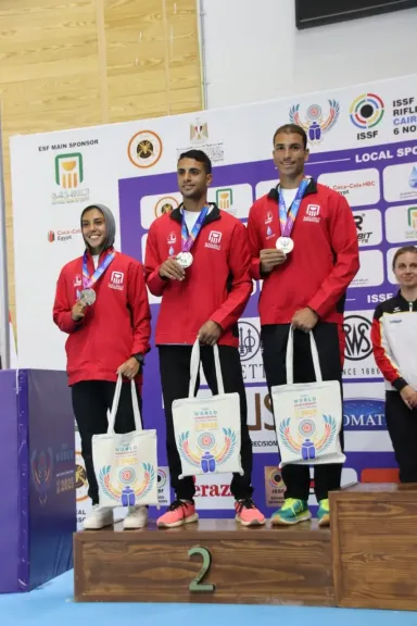 النجوم المصريون أثبتوا أنهم قادرون على المنافسة أمام أقوى مدارس العالم، ورفعوا راية مصر عالياً على منصات التتويج، في منافسات التارجت سبرنت – زوجي مختلط ناشئين، واصل الثنائي الشاب داليا صباح وعمر سالم التألق، وحصلا على الميدالية الفضية بعد أداء رائع، مؤكدين مستقبلاً مشرقاً للرماية المصرية في فئة الناشئين، وحصد الذهبية – ألمانيا: ألينا فاينمان – بوركي لوكاس فولك، وحصد البرونزية – سويسرا: تيسّا ديتريخ – غال باتريك