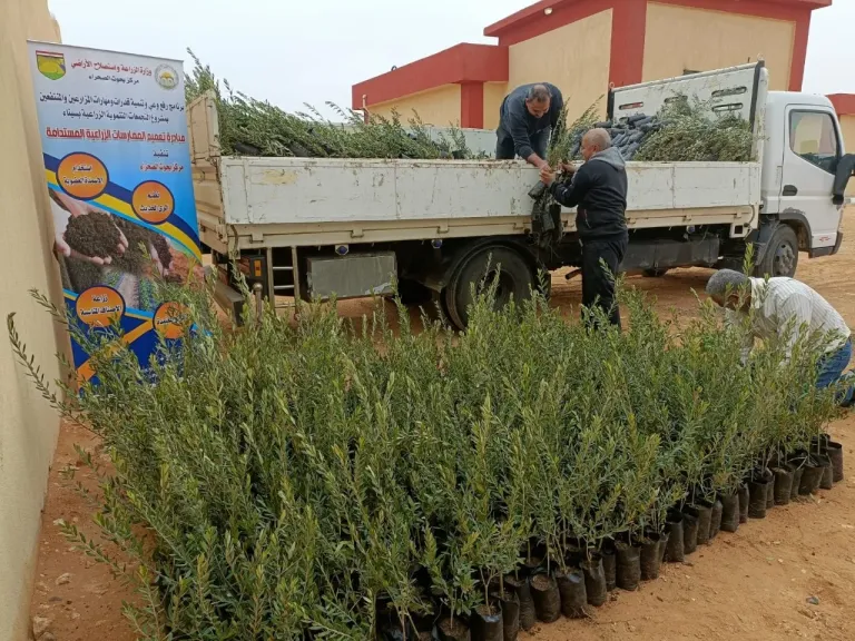 وقال إنه يتم أيضا من خلال مركز التنمية المستدامة لموارد مطروح التابع للمركز، تنفيذ برامج لدعم زراعة الزيتون عبر إنتاج وتوزيع شتلات زيتون مؤقلمة ومنتخبة مجانًا، وتقديم إرشاد يعتمد على الممارسات الزراعية الجيدة لتحسين الإنتاجية ودخل المزارعين. وتنفذ وحدة البساتين حقولًا إرشادية نموذجية، من بينها أكثر من 250 حقلًا سنويًا في السنوات الأولى من مشروع "برايد"، و143 حقلًا في موسم 2024/2025 مع تعزيز الدعم الفني، كما يشرك المركز عددًا كبيرًا من المزارعين في التدريب، ويعتمد على الندوات وورش العمل والمواد المطبوعة إلى جانب وسائل التواصل الاجتماعي لنقل المعرفة، مشيرا إلى ان هذه الجهود قد ساهمت في زيادة الإقبال على زراعة الزيتون، ودعم دخوله في سلاسل التصنيع الزراعي، إضافة إلى تطوير نظم الري والتسميد الملائمة للبيئة الصحراوية.