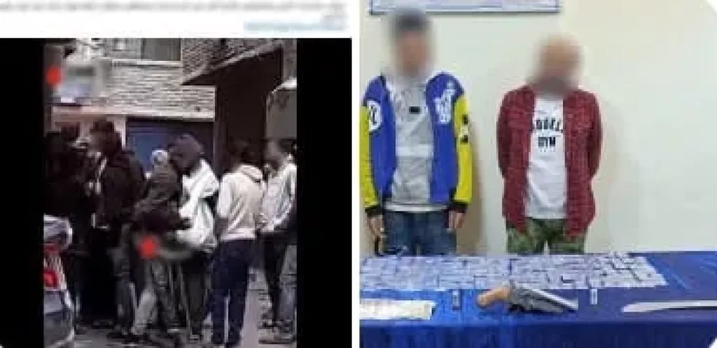 وبالفحص أمكن تحديد وضبط الظاهران بمقطع الفيديو (شخصين "لأحدهما معلومات جنائية"- مقيمان بمنطقة بولاق الدكرور)، وبحوزتهما (كمية من مخدر الآيس - فرد محلي - سلاح أبيض - مبلغ مالي)، وبمواجهتهما أقرا بحيازتهما للمواد المخدرة بقصد الاتجار.