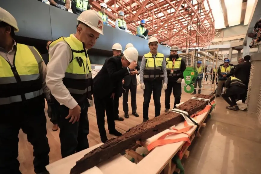 وسط اهتمام وتغطية إعلامية محلية ودولية واسعة، شهد اليوم السيد شريف فتحي وزير السياحة والآثار، بمرافقة الدكتور أحمد غنيم الرئيس التنفيذي لهيئة المتحف المصري الكبير، والسيدة ميادة مجدي الممثل الأول الإقليمي الوكالة اليابانية للتعاون الدولي مصر (الچايكا) مصر، أعمال تثبيت أول قطعة خشبية من ألواح مركب الملك خوفو الثانية التي تم ترميمها، على الهيكل الخشبي المُعد خصيصًا، إيذانًا ببدء المرحلة الأهم من مشروع إعادة تركيب المركب داخل متحف مراكب خوفو بالمتحف المصري الكبير.
