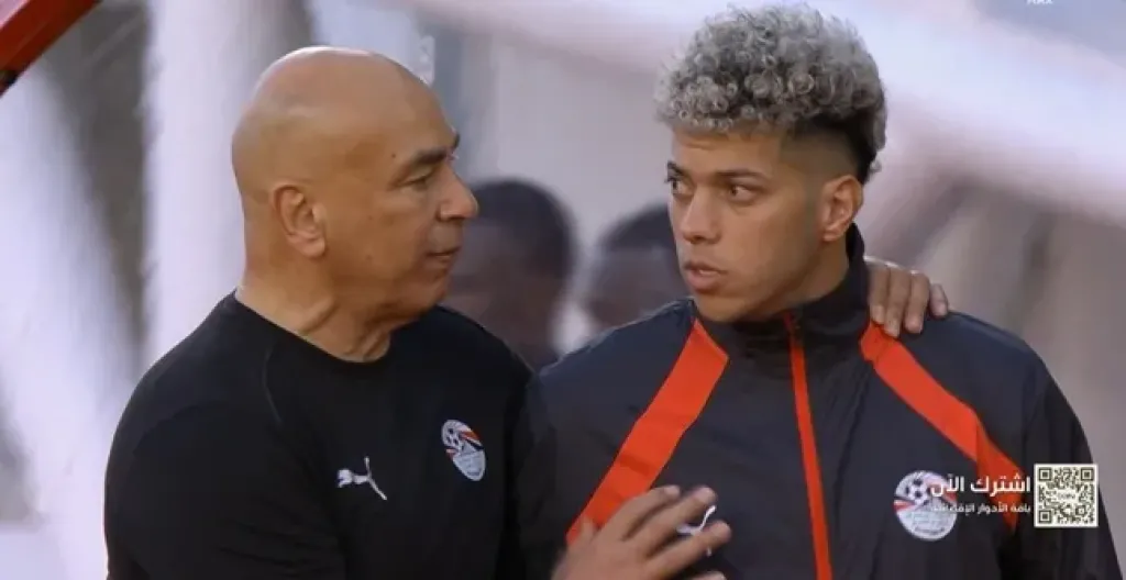 تدخل إمام عاشور، لاعب وسط منتخب مصر لمنع مشادة بين حسام حسن المدير الفني للفراعنة، وجوديل دوسو، خلال مباراة الفريقين اليوم الإثنين على ملعب "أدرار" في أكادير ضمن منافسات دور الـ16 لكأس أمم أفريقيا 2025 المقامة في المغرب.