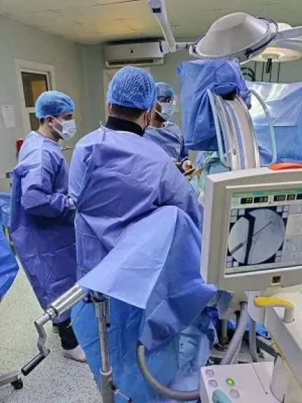 وعقب استقبال الحالة، أُجري التقييم الإكلينيكي الشامل والفحوصات الطبية اللازمة، وعلى ضوء النتائج تقرر التدخل الجراحي العاجل، حيث تم إجراء رد مغلق وتثبيت لكسر أعلى الفخذ الأيمن بين المدورين باستخدام مسمار نخاعي تشابكي "جاما نيل" المخصص لمثل هذه الكسور، بما يحقق ثباتًا جيدًا للكسر، ويسهم في سرعة التعافي وتقليل فرص حدوث المضاعفات.