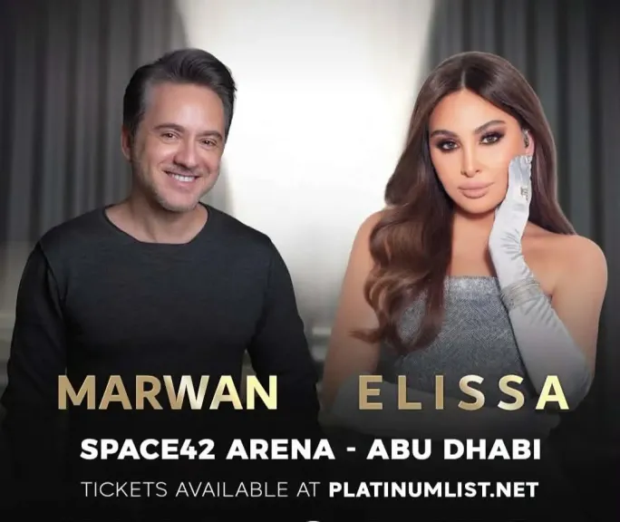 تستعد المطربة اللبنانية إليسا للاشتراك مع مواطنها المطرب اللبناني مروان خوري في حفل غنائي واحد يوم 1 فبراير المقبل في العاصمة الإماراتية أبو ظبي على خشبة مسرح Space 42 أرينا.