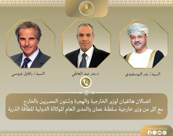 وفي سياق متصل، تلقى وزير الخارجية اتصالاً هاتفيًا من السيد رافائيل جروسي المدير العام للوكالة الدولية للطاقة الذرية يوم السبت ٧ فبراير، حيث تناول الاتصال التطورات المتعلقة بالملف النووي الايراني، حيث أكد الوزير عبد العاطي في هذا الصدد استمرار الجهود المصرية الرامية لخفض التصعيد في المنطقة، مشدداً على أهمية مواصلة بذل الجهود الإقليمية والدولية لخفض حدة التوتر والتصعيد بالمنطقة والدفع بالحلول الدبلوماسية، مشددا أن مصر ستواصل اتصالاتها المكثفة وجهودها الحثيثة لدعم التوصل الي تسويات تعزز من منظومة الأمن والاستقرار الإقليمي والدولي.