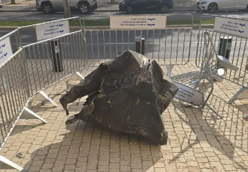 ونشرت عبر صفحتها الرسمية بمنصة «إكس»، صورة توثق موقع سقوط الشظية قرب الكنيس اليهودي.