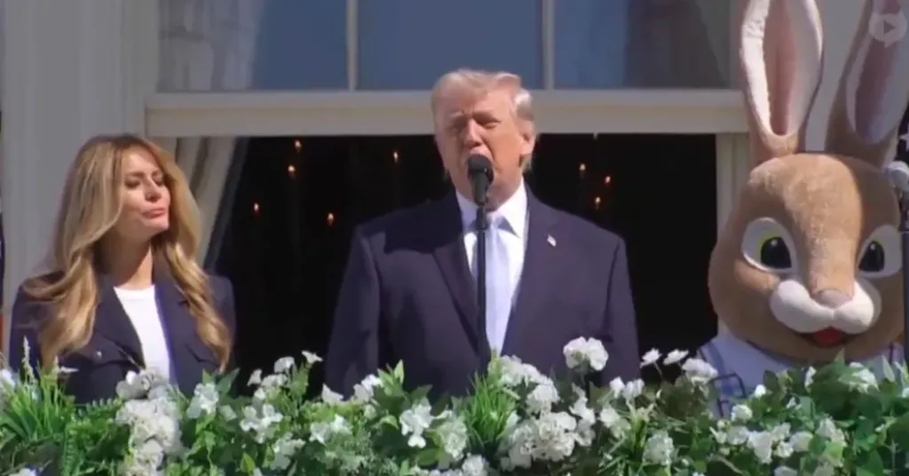 وتحدث ترامب، وبجواره أرنب عيد الفصح، عن الحرب مع إيران، إلى جانب عملية إنقاذ طيار أُصيب بعد إسقاط طائرته، حيث تقطعت به السبل في منطقة جبلية نائية داخل إيران.