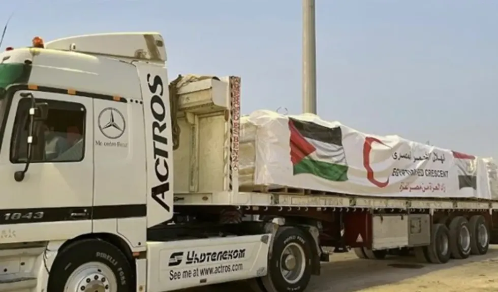 قافلة المساعدات الـ183 تدخل غزة عبر معبر كرم أبو سالم ضمن “زاد العزة” من مصر